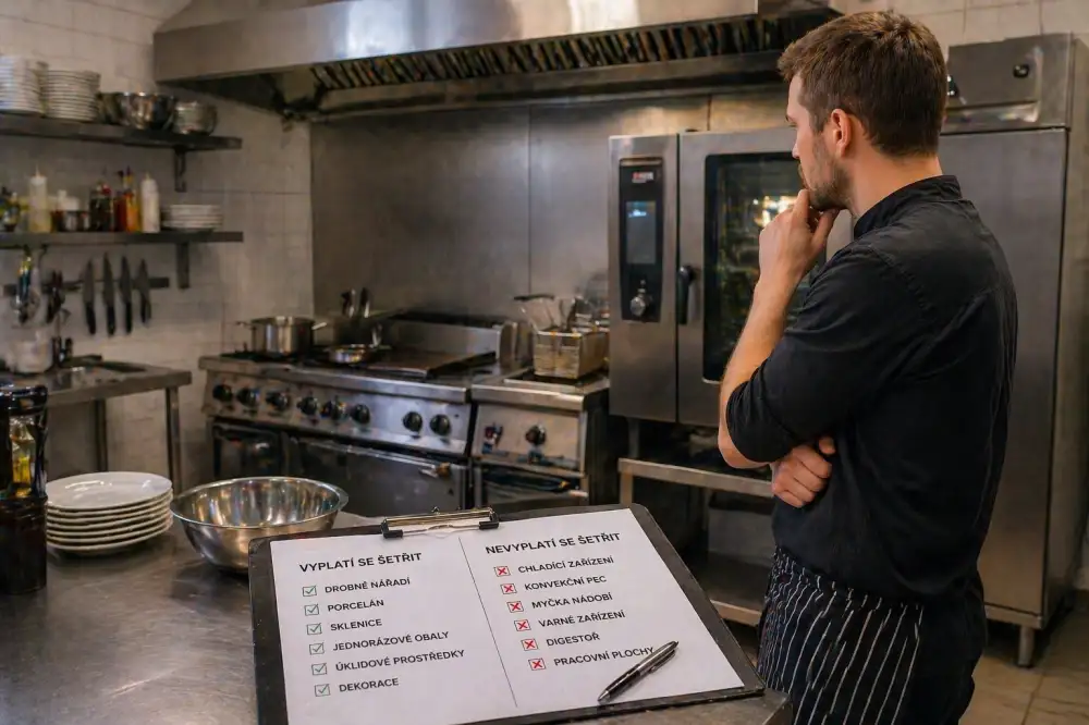 Pravidlo zkušených provozních zní jasně. Šetřit lze na dekoraci, ubrusech, jídelních lístcích. Ne na technice, která jede deset hodin denně. Pec, fritéza, kávovar – to jsou položky, kde se levnější varianta vrací dvojnásobně při první poruše v pátek večer. A podobně u spotřebičů, které drží chladový řetězec: výpadek chlazení může znamenat nejen vyhozené zboží, ale v horším případě i zavření kontrolou hygieny.